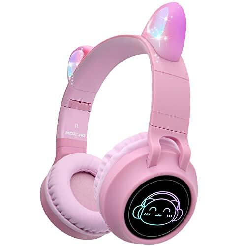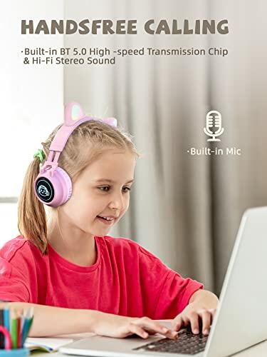 Home Electronics Kids Wireless Bluetooth Headphones with Microphone, Colorful LED Cat Ear Headphones with 85dB Volume Limited & Soft Foldable Noise Cancelling Headphones for Kids/Adults/iPad/Laptop/PC (Pink)